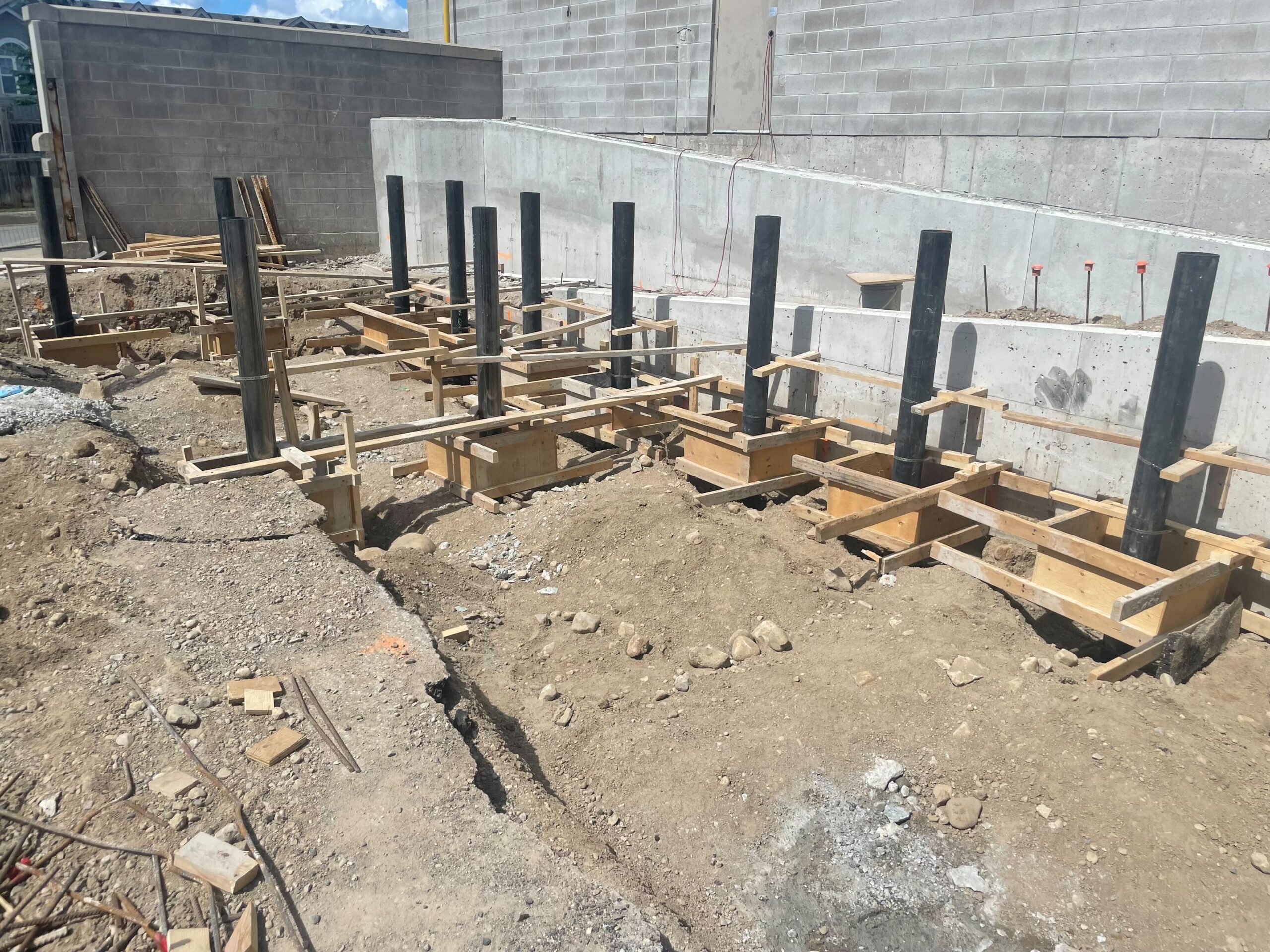Excavation reached the building footings, with soil carefully stockpiled for backfilling. Wood forms were installed to ensure accurate dimensions throughout the project.