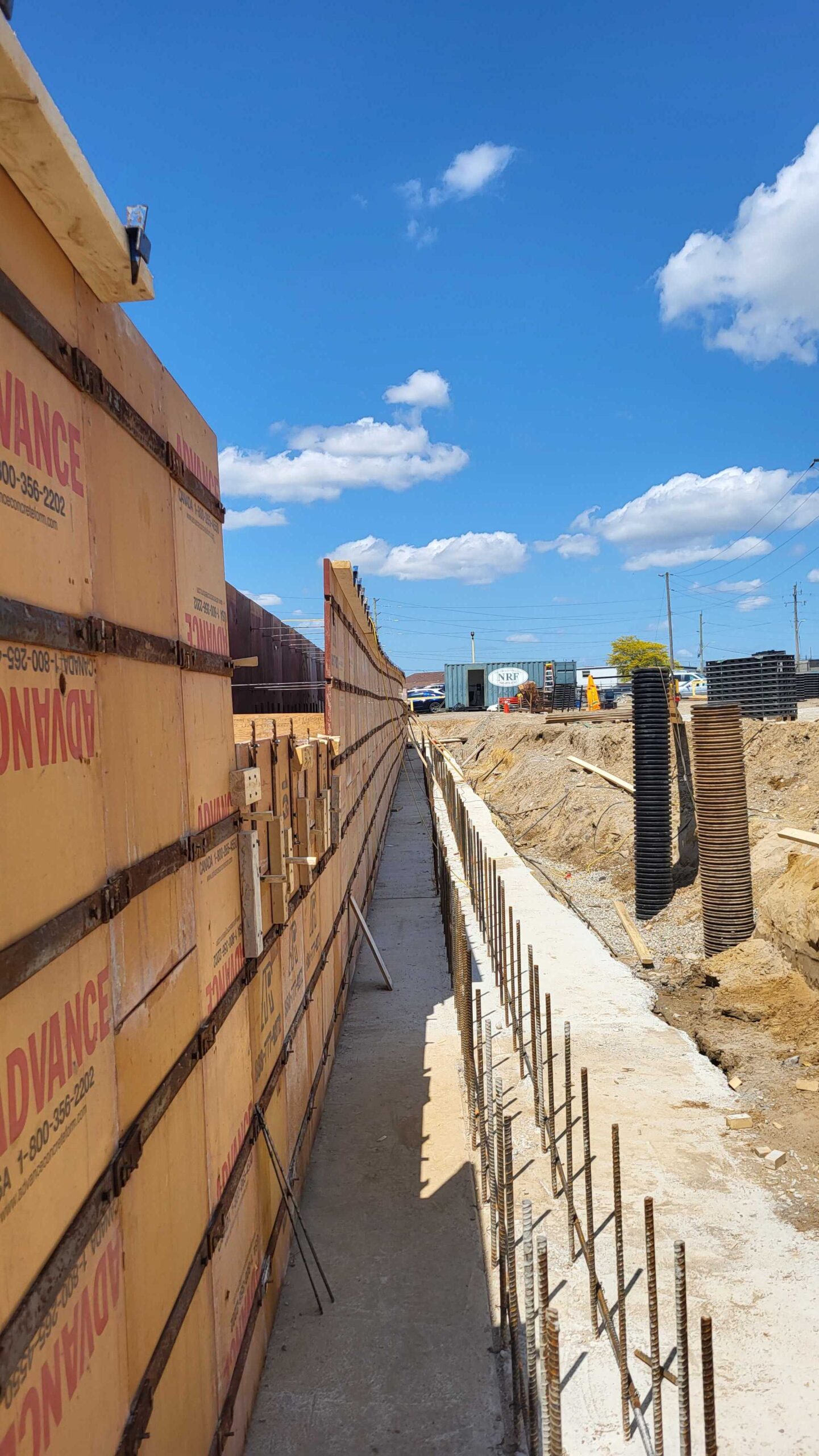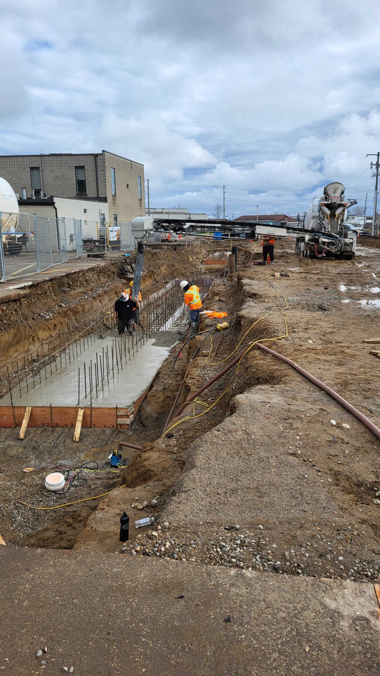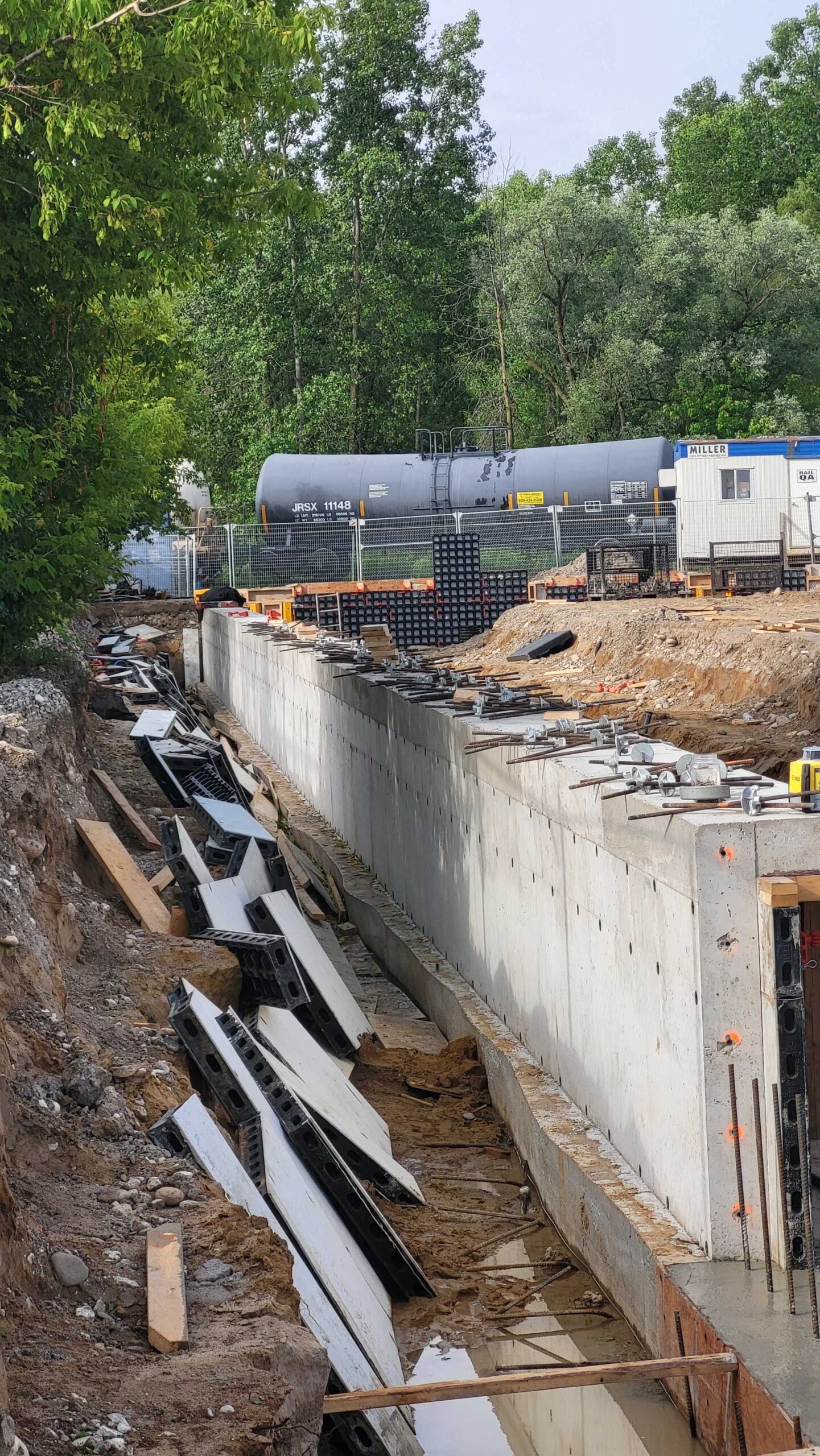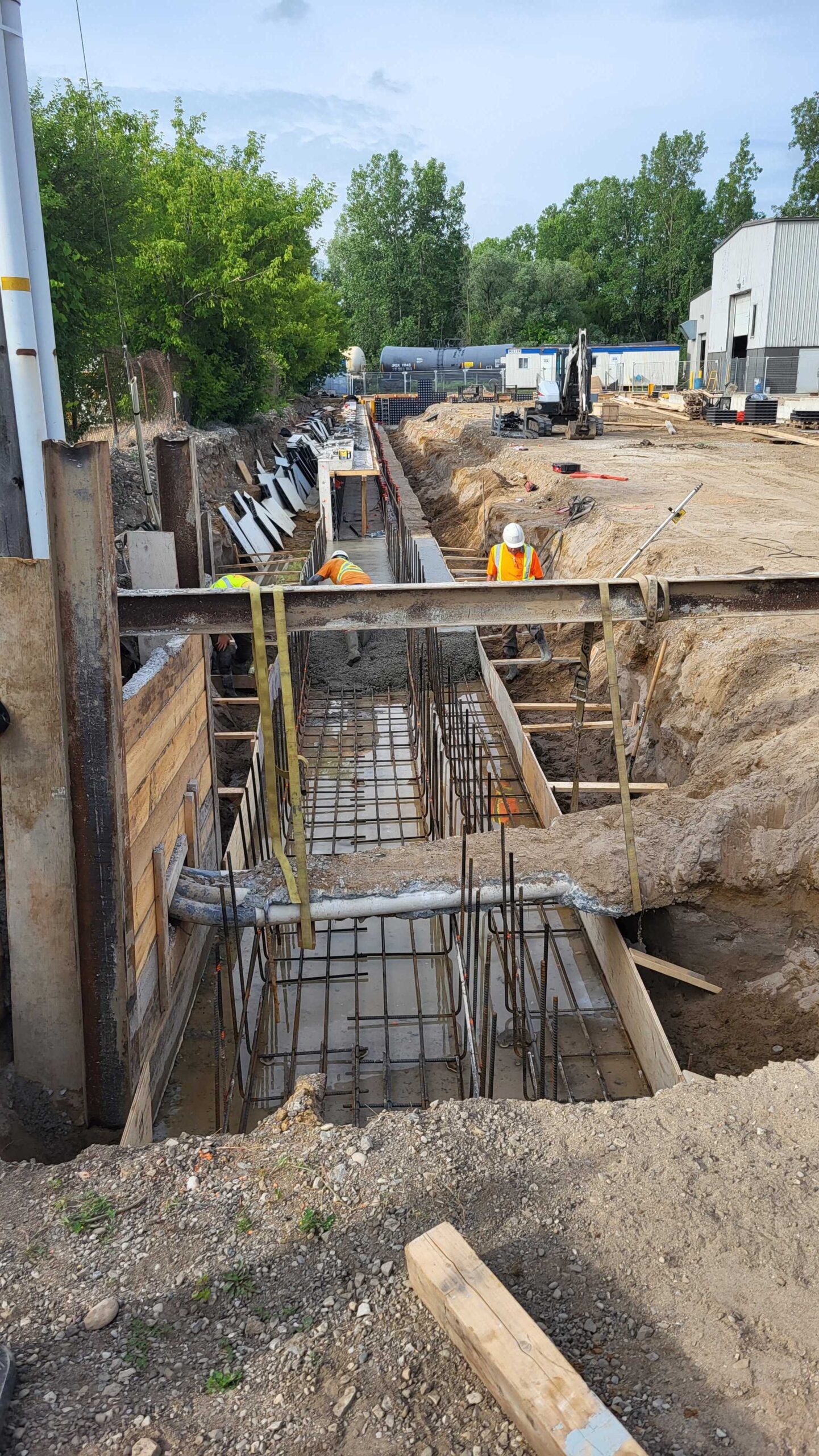 Complete excavation, stormwater infrastructure relocation, and cast-in-place concrete foundation work for a rail-related structure, including coordination with PNR Railworks and adherence to Ontario regulations.