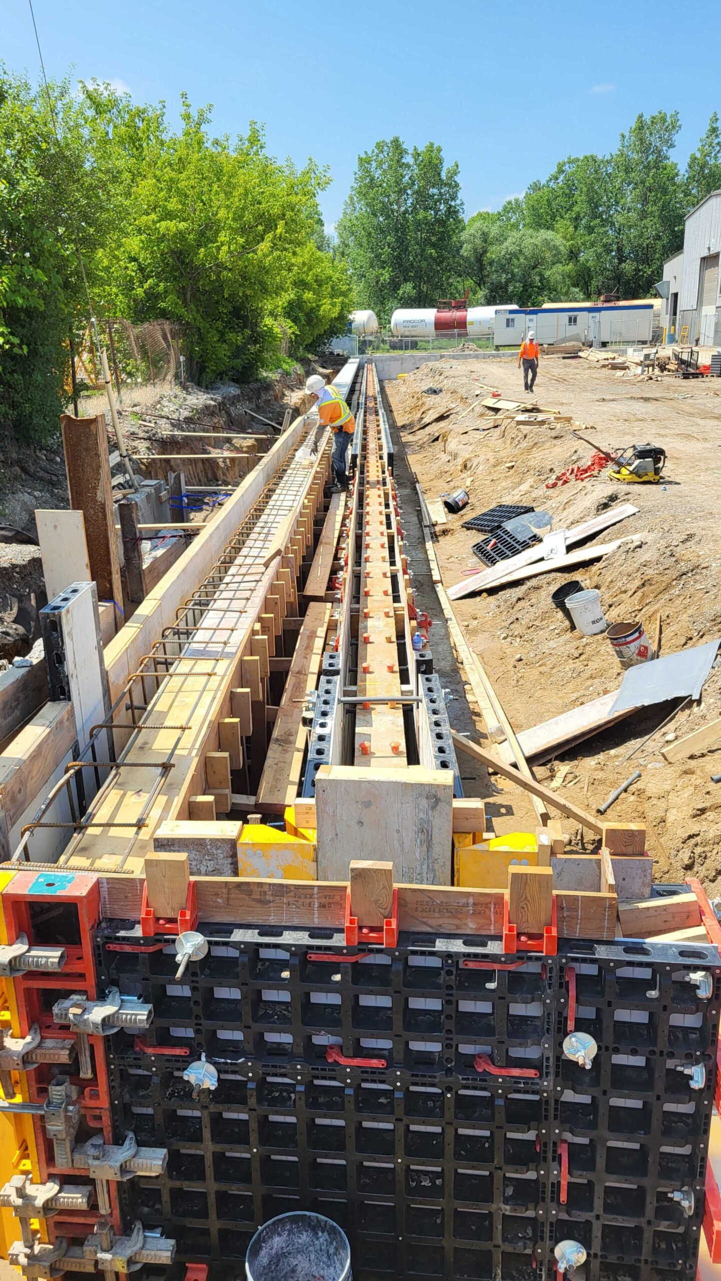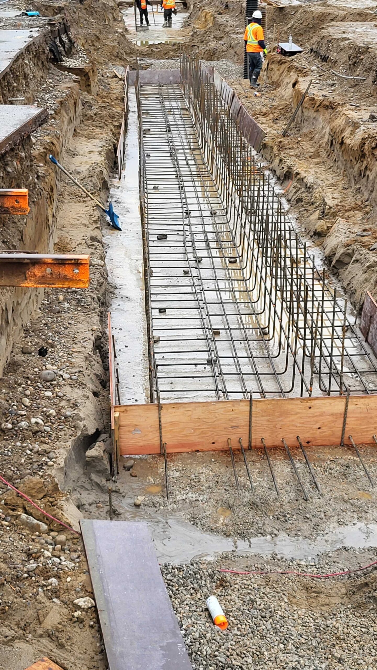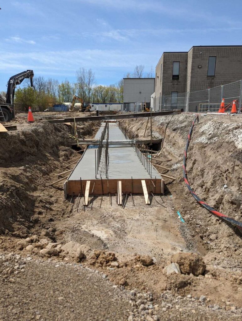 Complete excavation, stormwater infrastructure relocation, and cast-in-place concrete foundation work for a rail-related structure, including coordination with PNR Railworks and adherence to Ontario regulations.