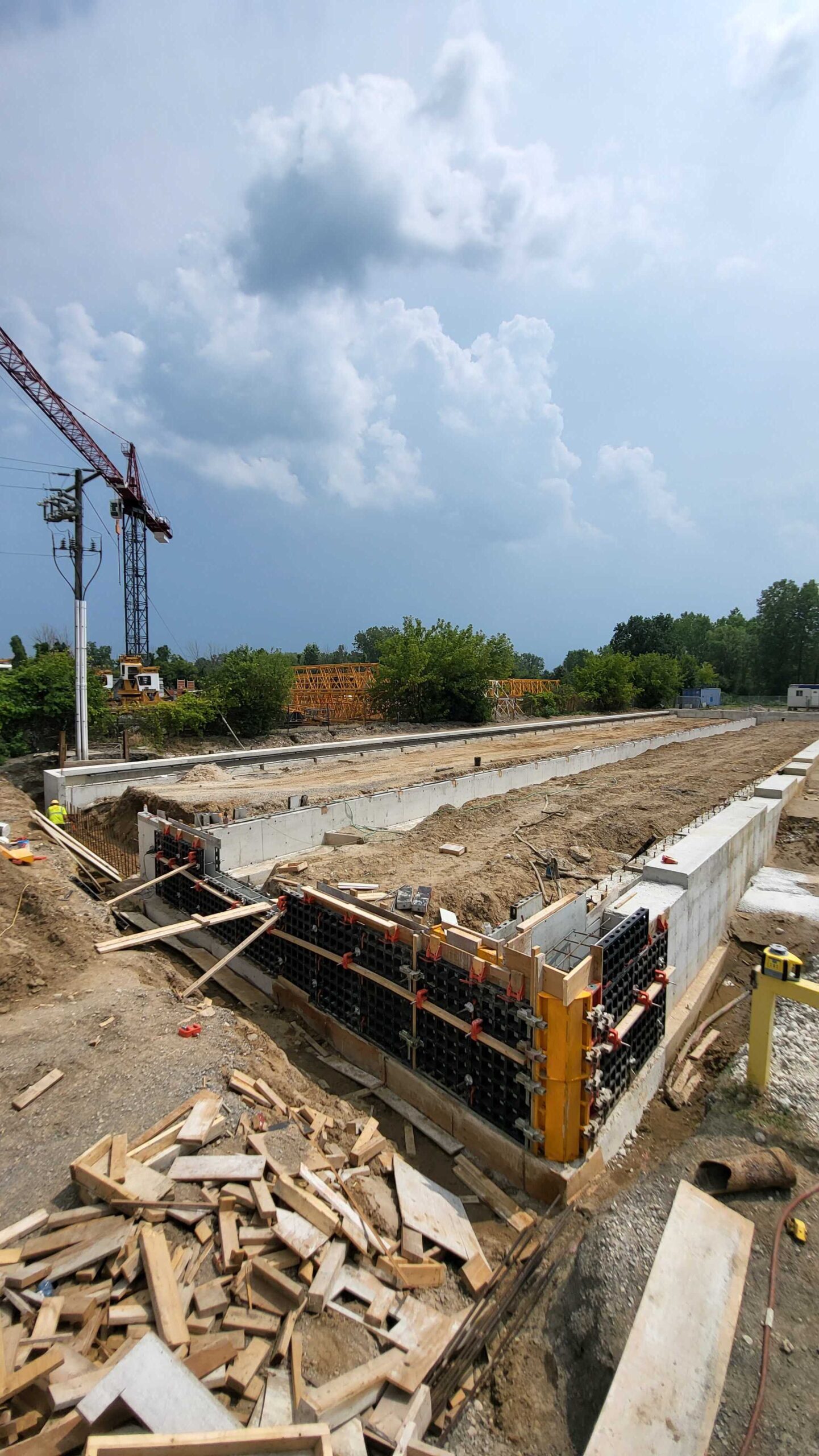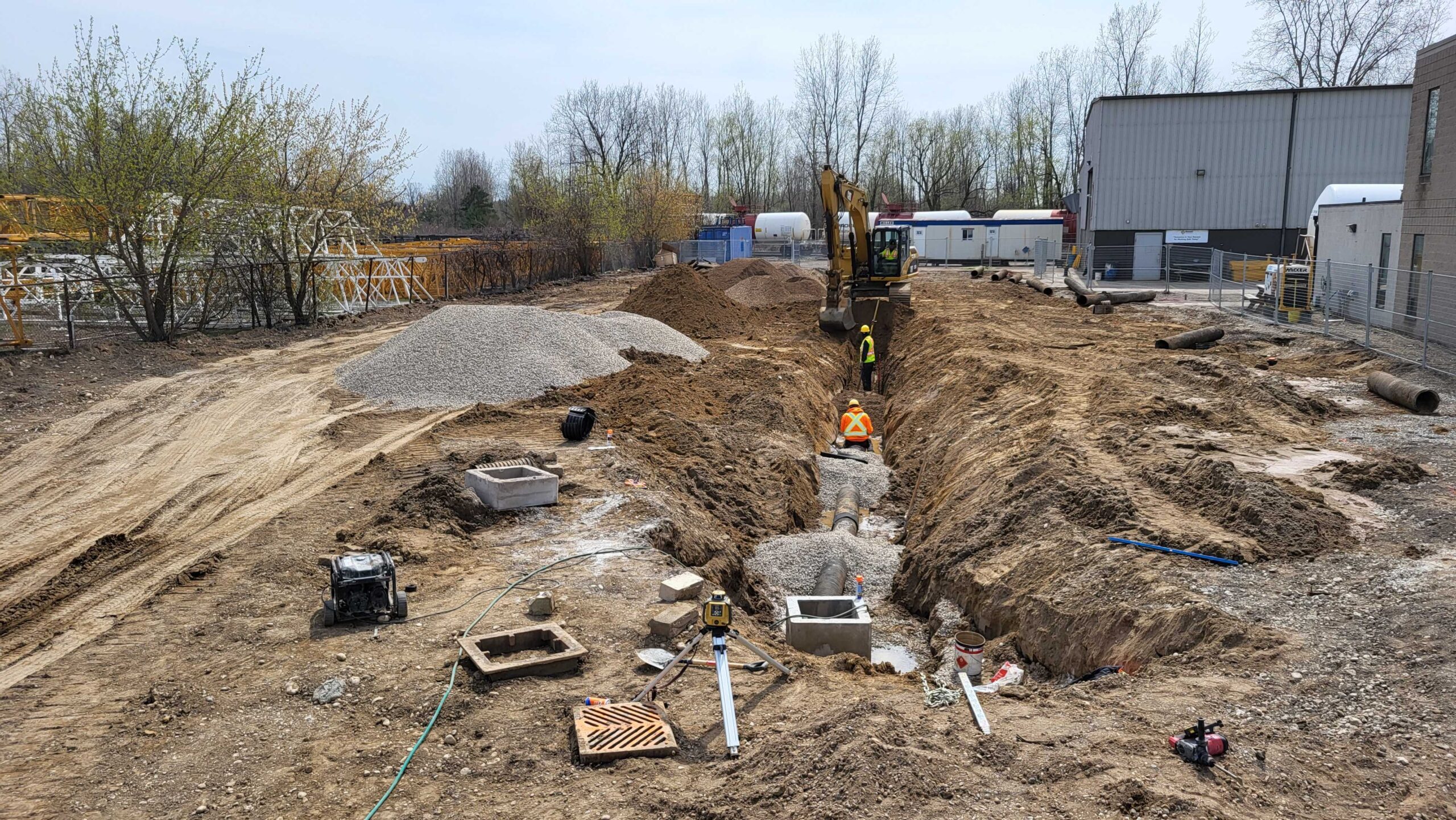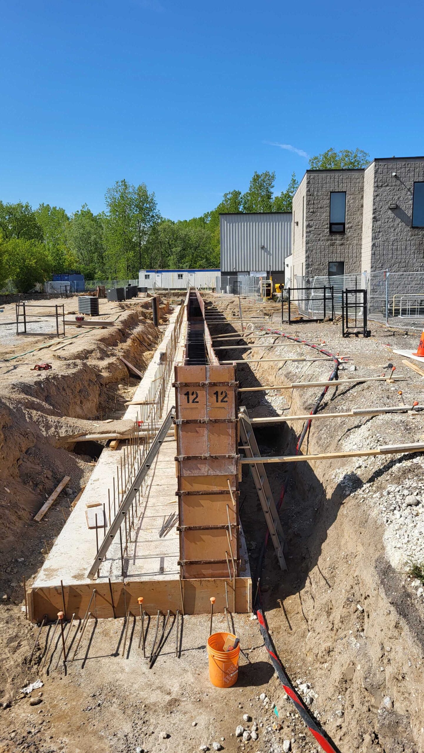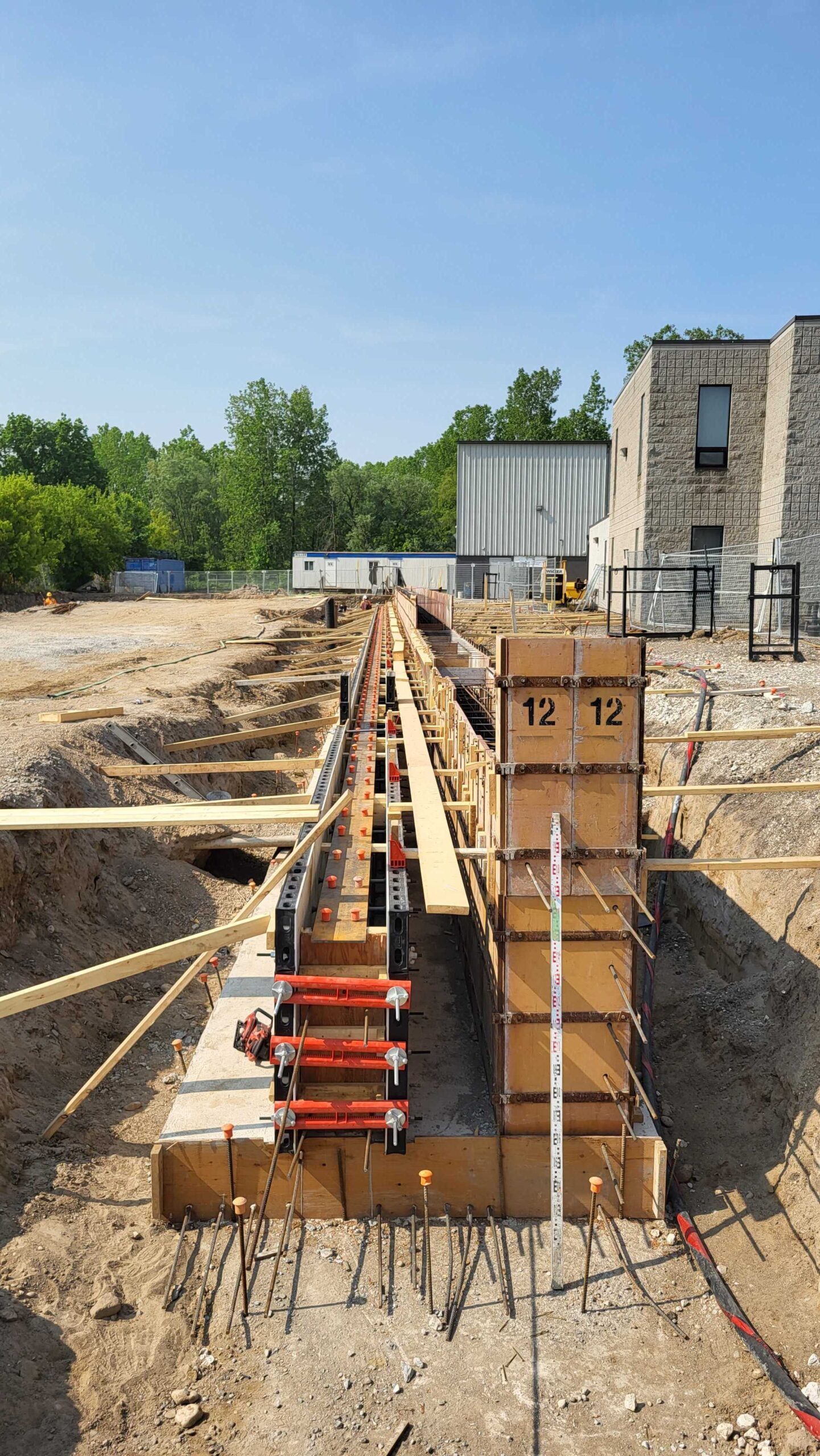 Complete excavation, stormwater infrastructure relocation, and cast-in-place concrete foundation work for a rail-related structure, including coordination with PNR Railworks and adherence to Ontario regulations.